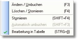 Ist dieser Menüpunkt deaktiviert, wird die ursprüngliche Buchungsmaske aufgerufen.