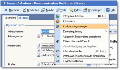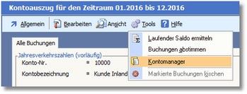4. Klicken Sie im Kontoauszug auf den Menüeintrag "Tools > Kontomanager".