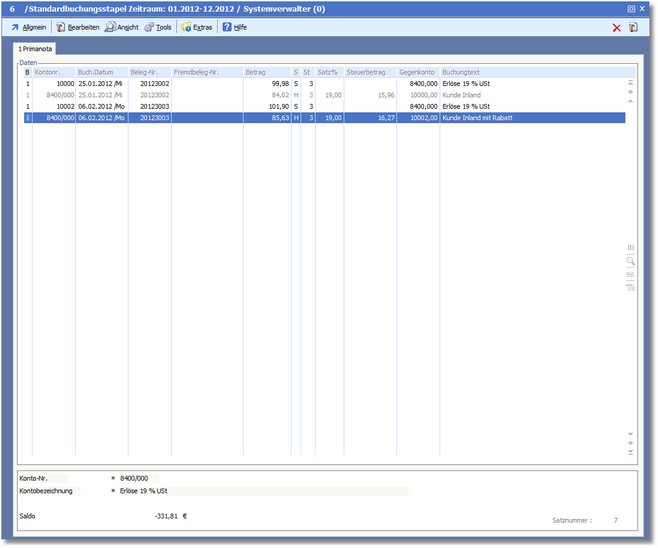 Hier wird der Buchungsstapel angezeigt.
