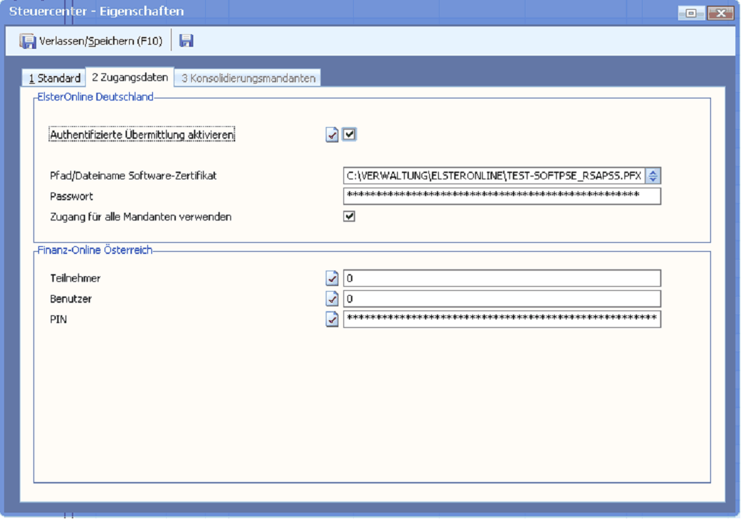 Die authentifizierte Übermittlung müssen Sie in jedem Mandanten über die Eigenschaften des Steuercenters aktivieren - unabhängig davon, ob Sie für jeden Mandanten einen eigenen ElsterOnline-Zugang haben oder nicht.