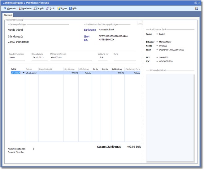 Positionserfassung Zahlungseingang