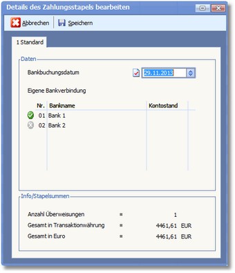 Die Karteikarte "Zahlungsstapel"