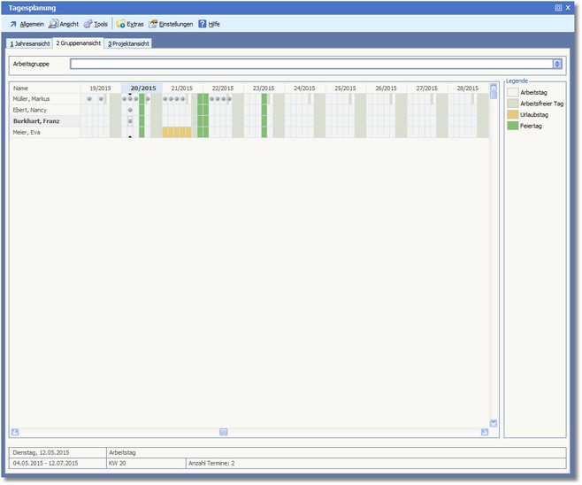 Im oberen Bereich können Sie mit [F5] die gewünschte ARBEITSGRUPPE auswählen.