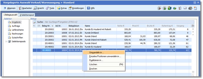 1. Klicken Sie mit der rechten Maustaste in der Belegübersicht Wareneingang/Warenausgang auf den zu wandelnden Beleg.