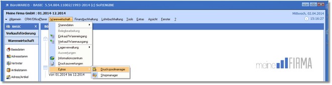 1. Klicken Sie mit der Maus im Hauptmenü auf "Warenwirtschaft > Extras > Druckspoolmanager".