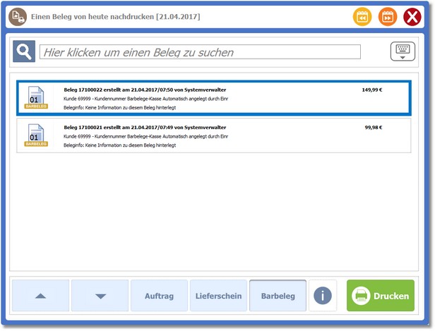 So können Sie einen Beleg des heutigen Tages nachdrucken:
