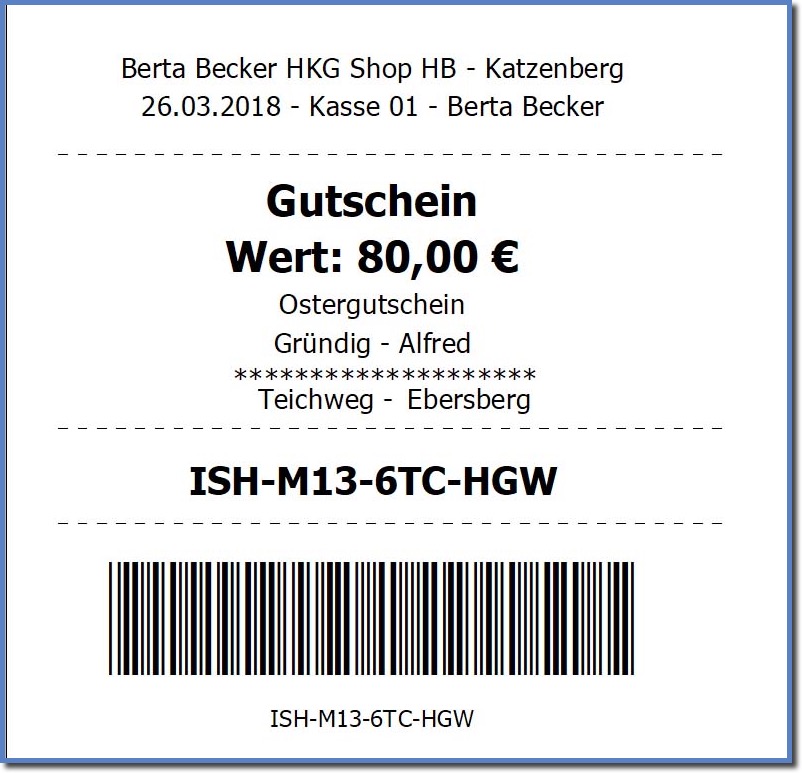 Die eingetragenen Informationen werden auf dem Gutschein mit ausgedruckt.