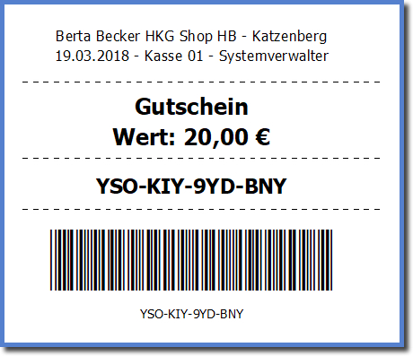 Ist diese Option aktiviert, wird zusätzlich zum Bon der Gutschein gedruckt.
