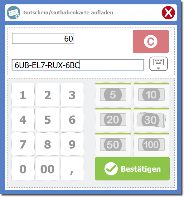 Einen Gutschein wieder aufladen (Guthabenkarte)