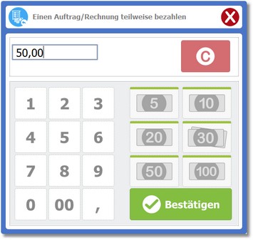 Das Dialogfenster für Teilzahlungen wird geöffnet.