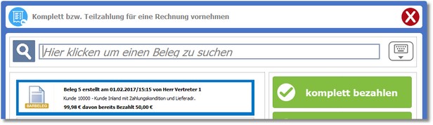 Anschließend wird der Dialog für die Rechnungszahlung geöffnet.
