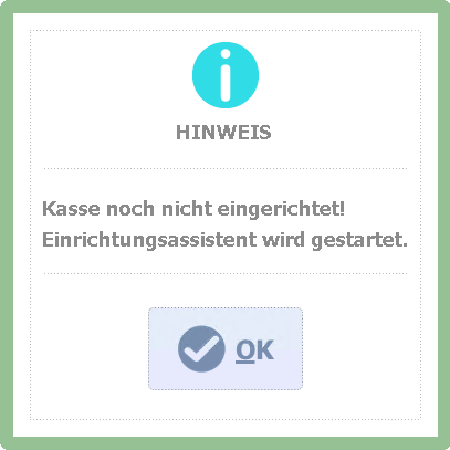 Da die Kasse noch nicht eingerichtet ist, wird der Assistenz zur Einrichtung gestartet.
