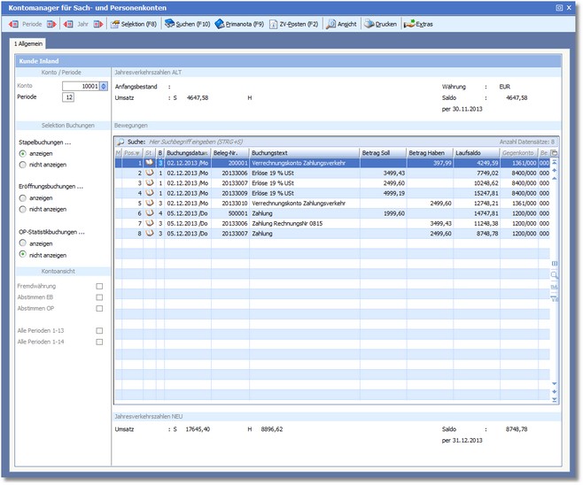Der Kontomanager für das in Bearbeitung befindliche Sach- oder Personenkonto wird nun geöffnet.