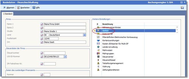 So rufen Sie die Bankstammdaten auf: