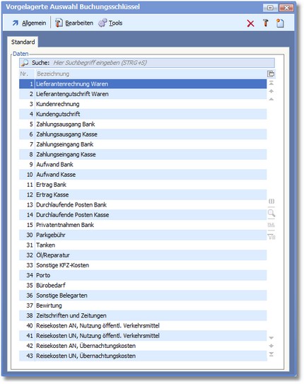Die vorgelagerte Auswahltabelle der Buchungsschlüssel wird geöffnet.