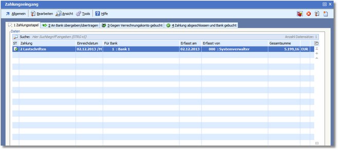 Das Programm öffnet den Dialog zur zentralen Bearbeitung von Zahlungseingängen.