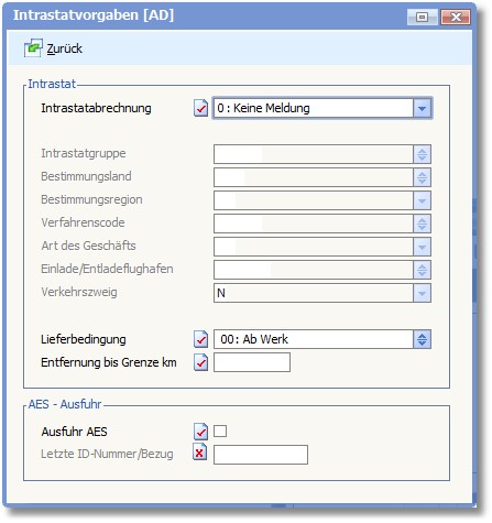 Aktivieren Sie den Status dieses Feldes, wenn Belege mit der AES-Schnittstelle exportiert werden sollen.