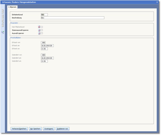 Die Felder des Dialogs "Erfassen/Ändern Mengeneinheiten" im Einzelnen:
