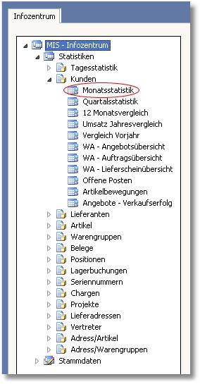 Für jeden Bereich des MIS-Informationszentrums stehen verschiedene Statistiktabellen zur Verfügung. Diese Statistiktabellen bieten die Möglichkeit der Bildschirmauswertung von Managementinformationen.