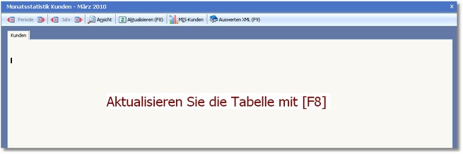 Das Programm öffnet in unserem Beispiel die leere Tabelle "Monatsstatistik Kunden - August 2006".