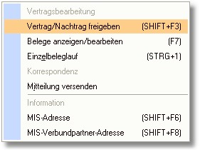 1. Sie können eine Freigabe anfordern über das Menü "Extras > Vertrag/Nachtrag freigeben“ oder mit der Tastenkombination [SHIFT]+[F3].