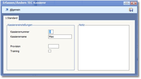 Kassierer erfassen/ändern