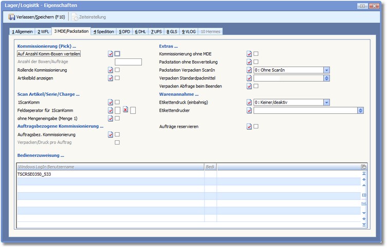 Die Karteikarte "MDE/Packstation"