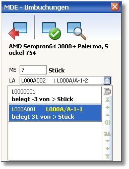 4. Im Feld ME tragen Sie nun die Anzahl des Artikels ein, welche auf ein anderes Lager umgebucht werden soll.