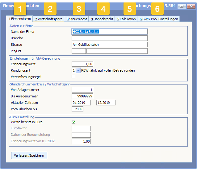 Hier werden allgemeine Angaben zu Ihrer Firma hinterlegt.