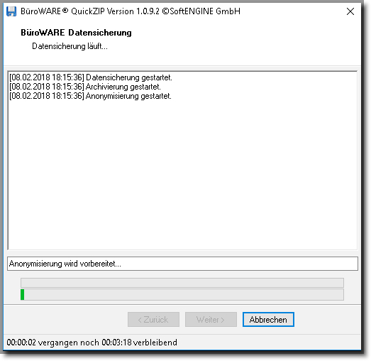 Mit Klick auf [Starten] – wird die Anonymisierung und Archivierung der Daten begonnen.