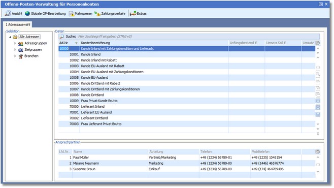 Das Programm öffnet die OP-Verwaltung für Personenkonten.