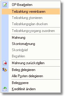4. Wählen Sie im sich öffnenden Dropdownmenü den Menüpunkt "Teilzahlung vereinbaren" und bestätigen Sie die Abfrage, ob der Offene Posten in Teilzahlung umgewandelt werden soll, mit <Ja>.