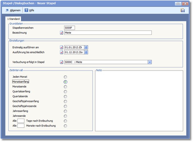 << Hier KLicken um eine Inhaltsübersicht anzuzeigen >> Navigation: Finanzbuchhaltung > Laufende Vorgänge > Stapelbuchungen > Die Karteikarte "Terminbuchungen" > Terminbuchungen anlegen und ändern > Die Karteikarte Standard |