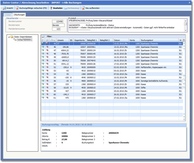 Sie beinhaltet alle in einer Importdatei befindlichen Buchungen in einer Tabelle.