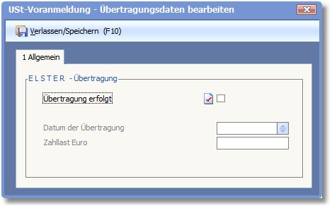 Um das Datum der Übertragung bzw. die Zahllast in Euro einzugeben, aktivieren Sie den Status des Feldes ÜBERTRAGUNG ERFOLGT.