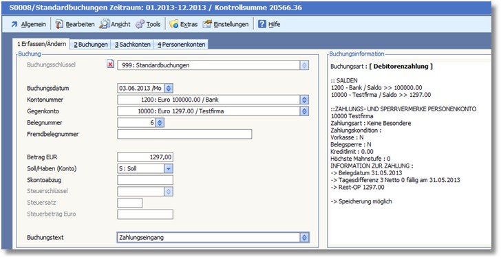 Am Monatsende sollten die Buchungen bei der Istversteuerung vor dem Istversteuerungslauf journalisiert werden!