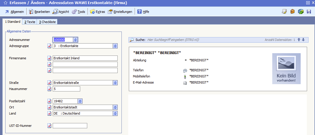 Handelt es sich bei der zu bereinigenden Adresse um eine Firmenadresse, werden nur die Ansprechpartner bereinigt.