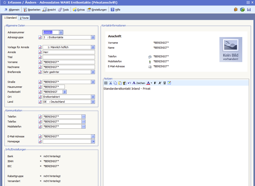 Einzelne Adressen können gelöscht (wenn keine buchhaltungsrelevanten Belege in den letzten 10 Jahren vorhanden) oder „bereinigt“ werden.