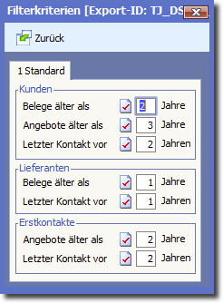 Nach dem Starten der Funktion lassen sich die Filterkriterien auch neu festlegen.
