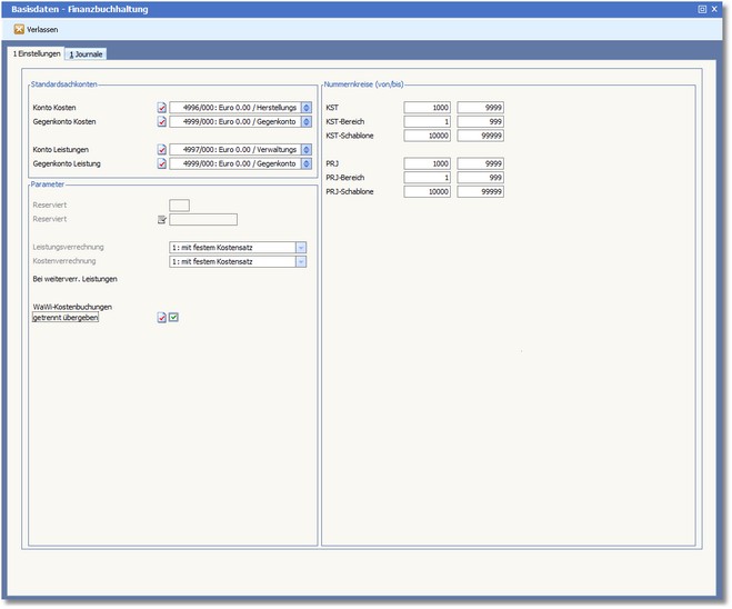 Die Eingaben in den Bereichen Standardsachkonten, Parameter und Nummernkreise dienen im Wesentlichen zur Steuerung von Verarbeitungsabläufen der Kosten- und Leistungsrechnung.