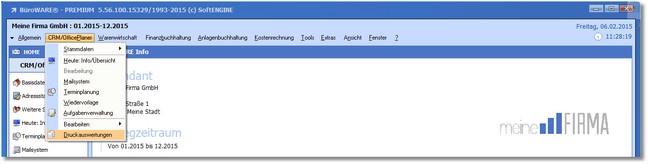1. Klicken Sie mit der Maus im Hauptmenü auf „CRM/OfficePlaner > Druckauswertungen".