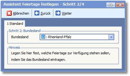 Da die Feiertage zwischen den einzelnen Bundesländern variieren können, müssen Sie im zweiten Schritt nun das Bundesland festlegen.