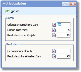 In diesem Dialog können Sie die Urlaubsdaten für den ausgewählten Mitarbeiter verwalten.