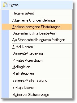 1. Wählen Sie in der Menüleiste des Mailsystems den Menüpunkt "Extras > Bedienerbezogene Einstellungen".