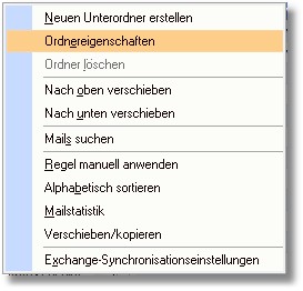 Über die Ordnereigenschaften können Sie die Einstellungen, die Sie bei der Neuanlage des Ordners festgelegt haben, anzeigen bzw. ändern.