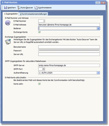 BüroWARE Exchange-Mailkonto: zusätzliche Mailadressen