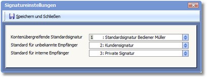 Hier können Sie festlegen, dass die zu erstellende Signatur als Standardsignatur eines bestimmten Kontos dienen soll, d.h. dass bei allen Mitarbeitern, die Mails über dieses Konto versenden und keine eigene Signatur definiert haben, am Ende einer zu sendenden Mail diese Signatur eingefügt wird.