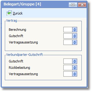 Für Rückbelastungen, die sich aus Verbundpartnergutschriften (Rabattgutschriften) ergeben, kann hier eine Beleggruppe eingetragen werden.