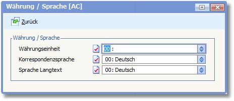 << Hier KLicken um eine Inhaltsübersicht anzuzeigen >> Navigation: Warenwirtschaft > Stammdaten > Basisdaten > Länderverwaltung > Währung/Sprache |