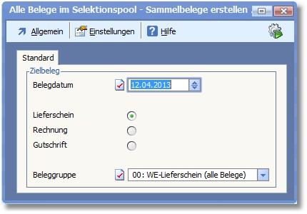Das Programm öffnet den Dialog "Sammelbelegerstellung".